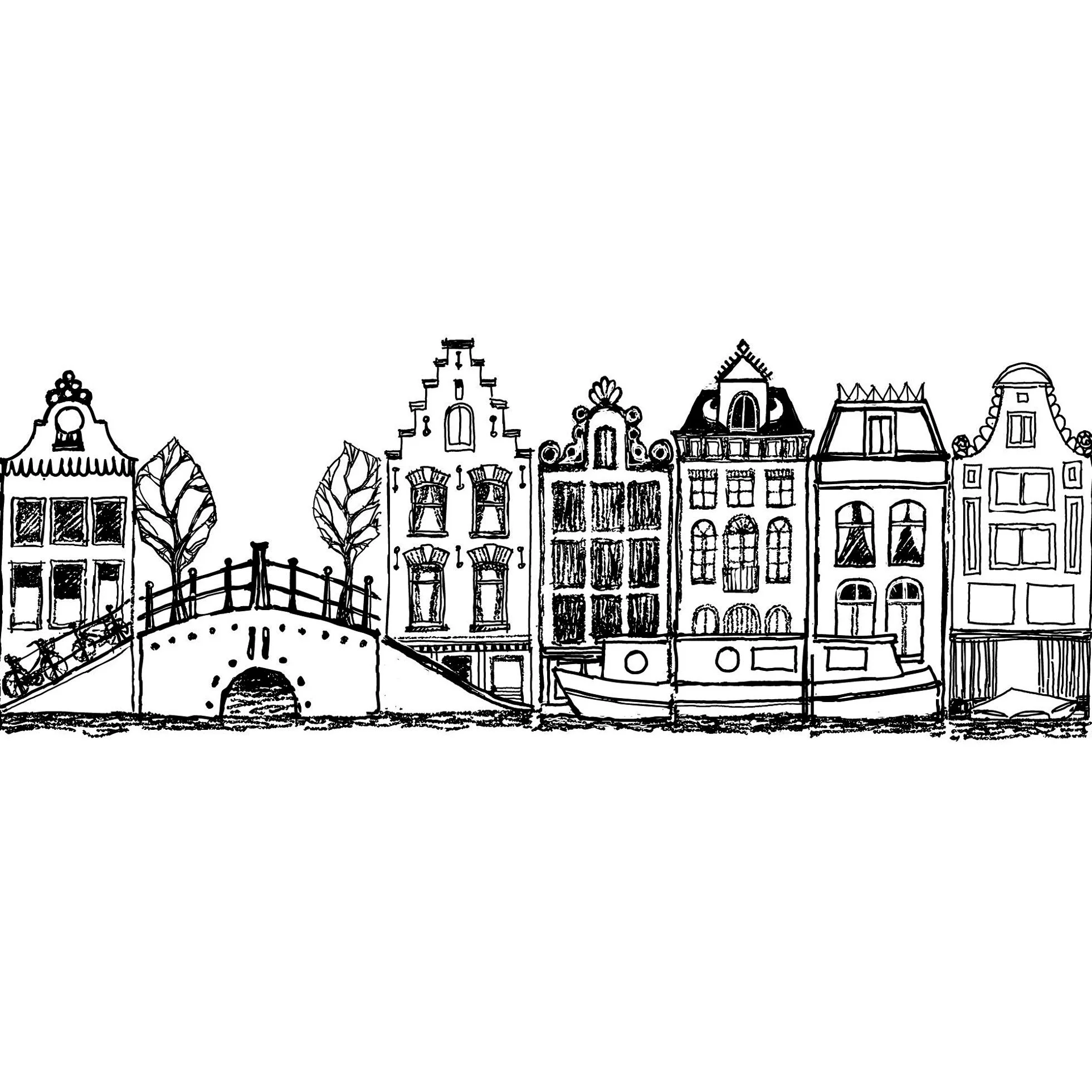On the wish list for the visual narrative were the very distinct and varied rooftops of the canal houses. The little bridges, their railings loaded with bikes also needed a mention as did the Red Light district. Initial designs show a traditional canalboat but along the way it became a party boat.